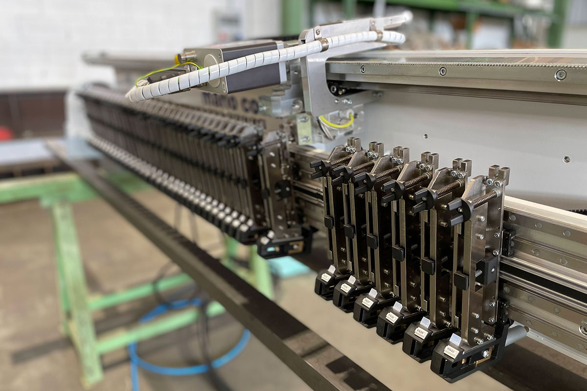 Il sistema di posizionamento con visualizzazione consente all’operatore di visualizzare in tempo reale, su un monitor da 12 pollici situato nella sezione di taglio, tutte le altezze e le posizioni dei supporti lama. La movimentazione resta manuale, ma l’operatore può contare su sensori MTS ad alta precisione per posizionare le unità di taglio in modo più rapido e accurato.